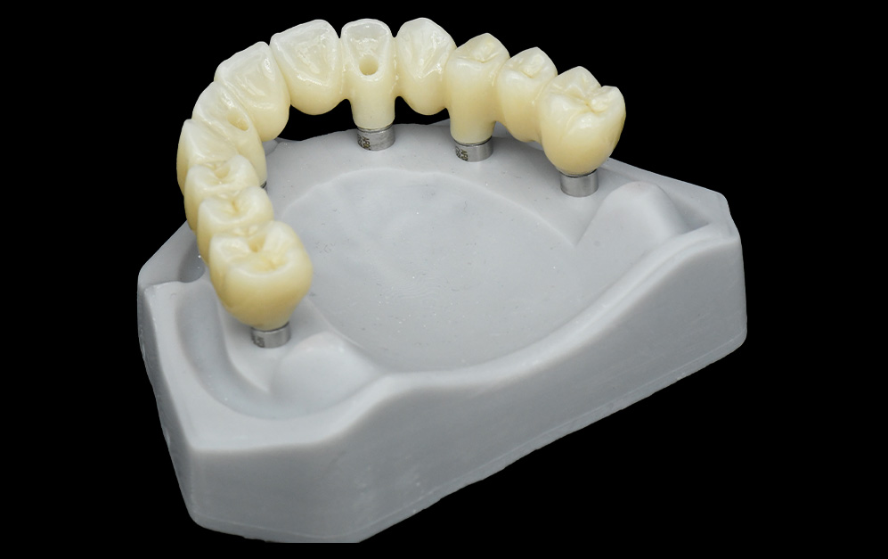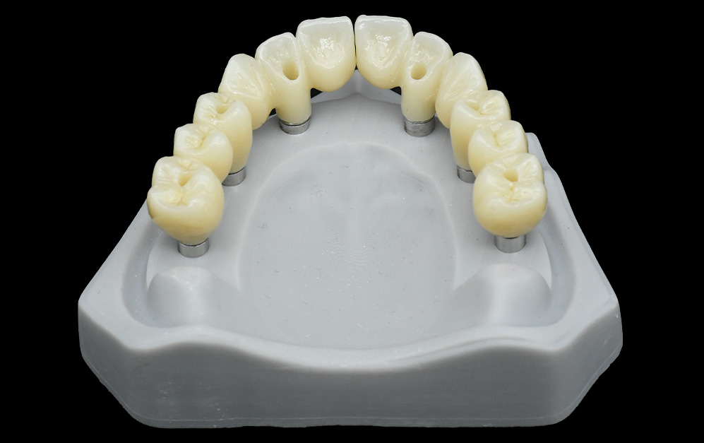 ①上部修复为整体氧化锆材料,色泽自然仿真,美学效果更佳;