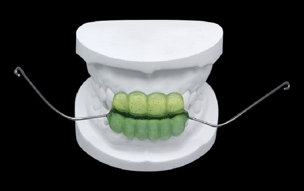 头帽式肌激动器可分为两部分,口外牵引装置和肌激动器,口外牵引装置即口外力对上颌、上牙槽突、上磨牙的抑制作用;头帽式肌激动器的作用原理与肌激动器一致。口外弓的向后牵引力的作用,加上肌激动器本身前伸下颌后传递到上颌的向后作用力,使上颌向前生长明显得到有效控制。