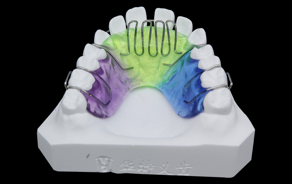 ①.可做成带环固定也可做成活动可摘式;活动可摘式除进食和清洁外可全天佩戴;固定粘接式,不依赖患者配合。