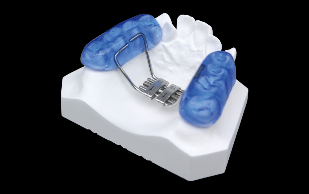 包胶式支架快速扩弓器属于支架型固定矫治器,由后牙包胶颌垫粘接固定,由扩弓螺丝连接支架和后牙包胶颌垫构成,属于快速扩弓器。主要用于严重拥挤或严重宽度不调的病例,生长发育的儿童约8-14岁,腭中缝开展,使颅面生长发育正常化,也可辅助于上颌发育不足进行前方牵引的安氏III类错颌的腭中缝开展。