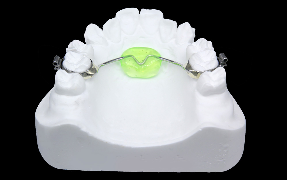 Nance兰丝弓在配合固定托槽矫治中,应用广泛。是增强支抗装置和维持牙弓长度的缺隙保持装置。体积小病人佩戴舒适,用于上颌。